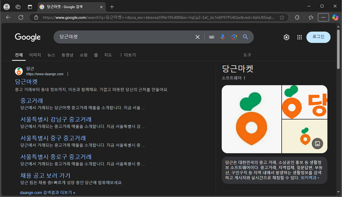 - 웹 브라우저를 열고 구글이나 네이버에서 당근마켓을 검색해보세요.